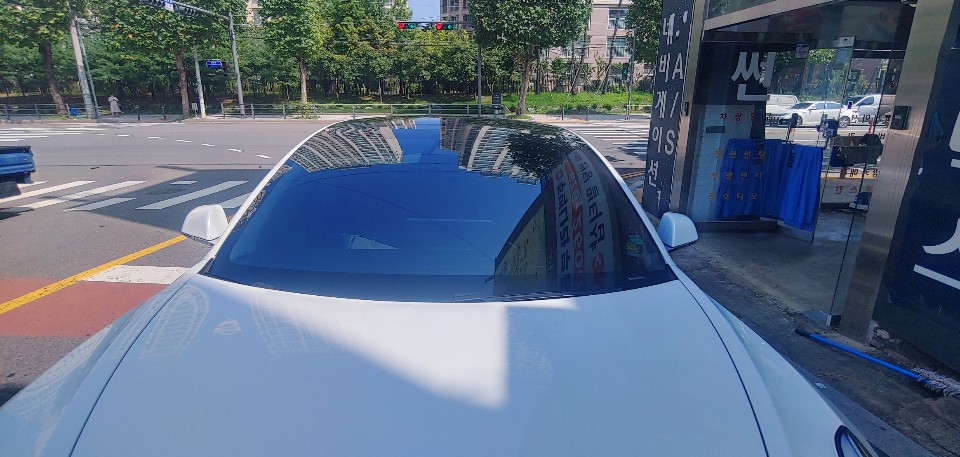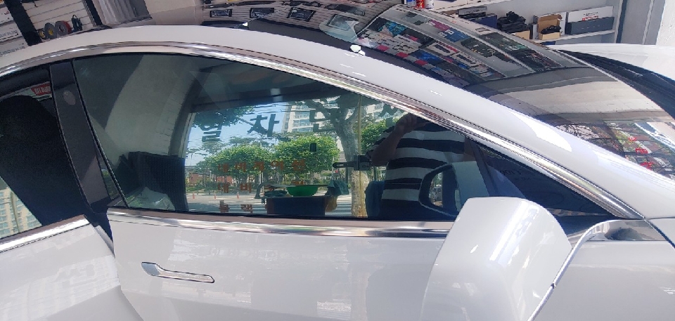 모델3 썬팅 작업관련 사진 및 실내에서 외부로 찍은 사진입니다~~^^ 참고로 전면 35%/ 측후면 15%에요~^^